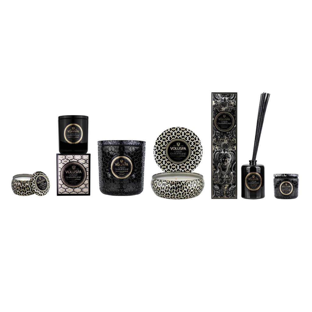 Our iconic tin takes on a new look and feel adorned in the Maison pattern emboss. A graceful urn-shaped container featuring three wicks creates a generous melted wax pool and ample fragrance throw while burning.This 12 ounce tin makes a statement on its own, and includes a coordinating lid, which can be used to extinguish the flame.
