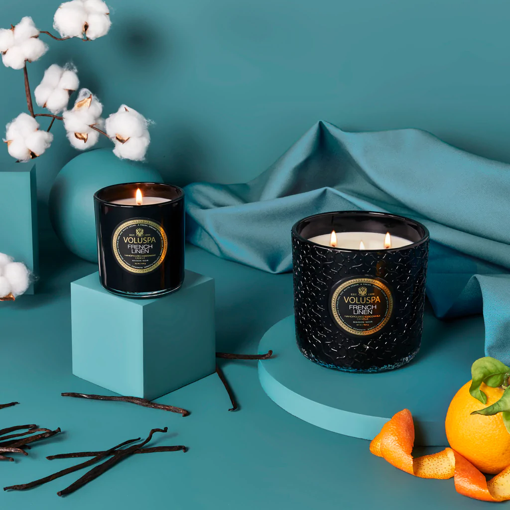 Voluspa’s unique coconut wax blend is hand-poured into 9.5 oz. embossed glass vessel and topped with a matching lid that keeps the candle dust-free when not in use. Our single wick allows you to enjoy fragrance throw for 60 hours. Our candles are hand-poured in the United States and feature our proprietary, clean-burning coconut wax blend and 100% natural wicks. Our products are free of phthalates, pesticides, parabens and sulfates and are never tested on animals. Up-cycle this best seller into a keepsake after the last burn.
